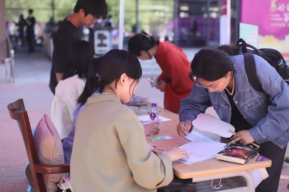 As sunlight glided across the spines of the books, the event officially began at 2:30 p.m. Students came carrying their cherished volumes — “May you find your own moonlight in Su Dongpo’s journey,” one wrote, “This copy of The Awakening of Cognition accompanied me through four years of college,” wrote another.