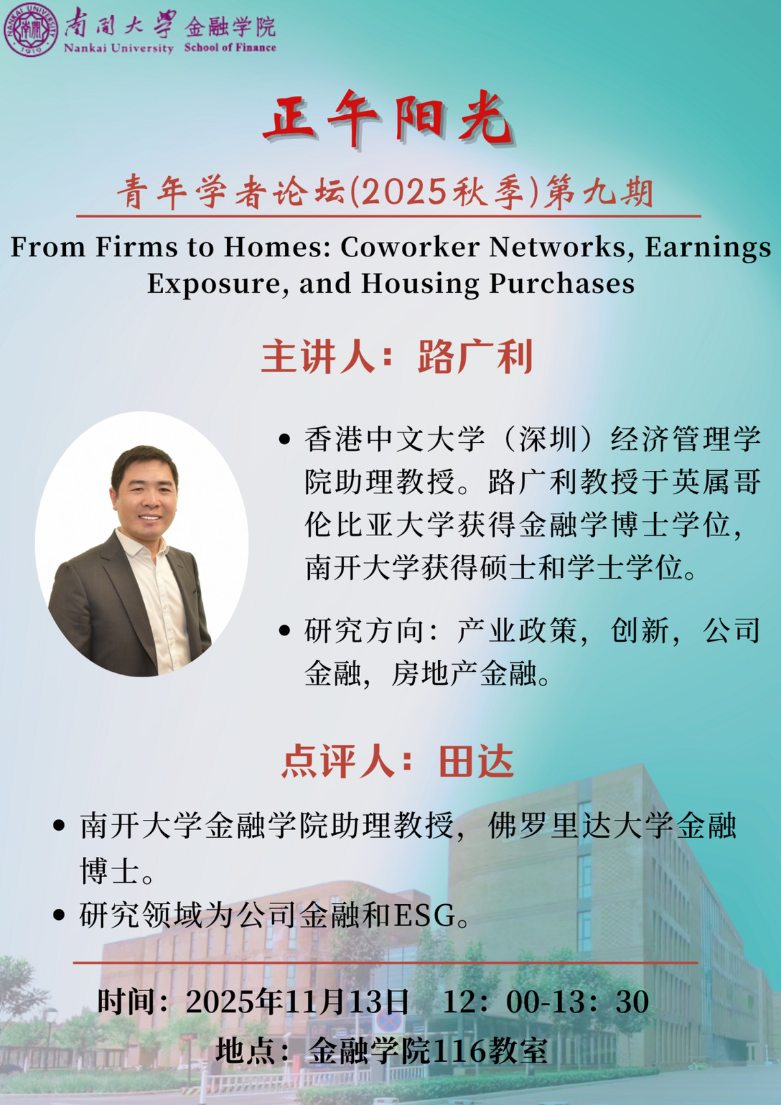 The ninth session of “Noon Sunshine-Young Scholars Seminar” for the Autumn Semester in 2025 is arranged as follows: