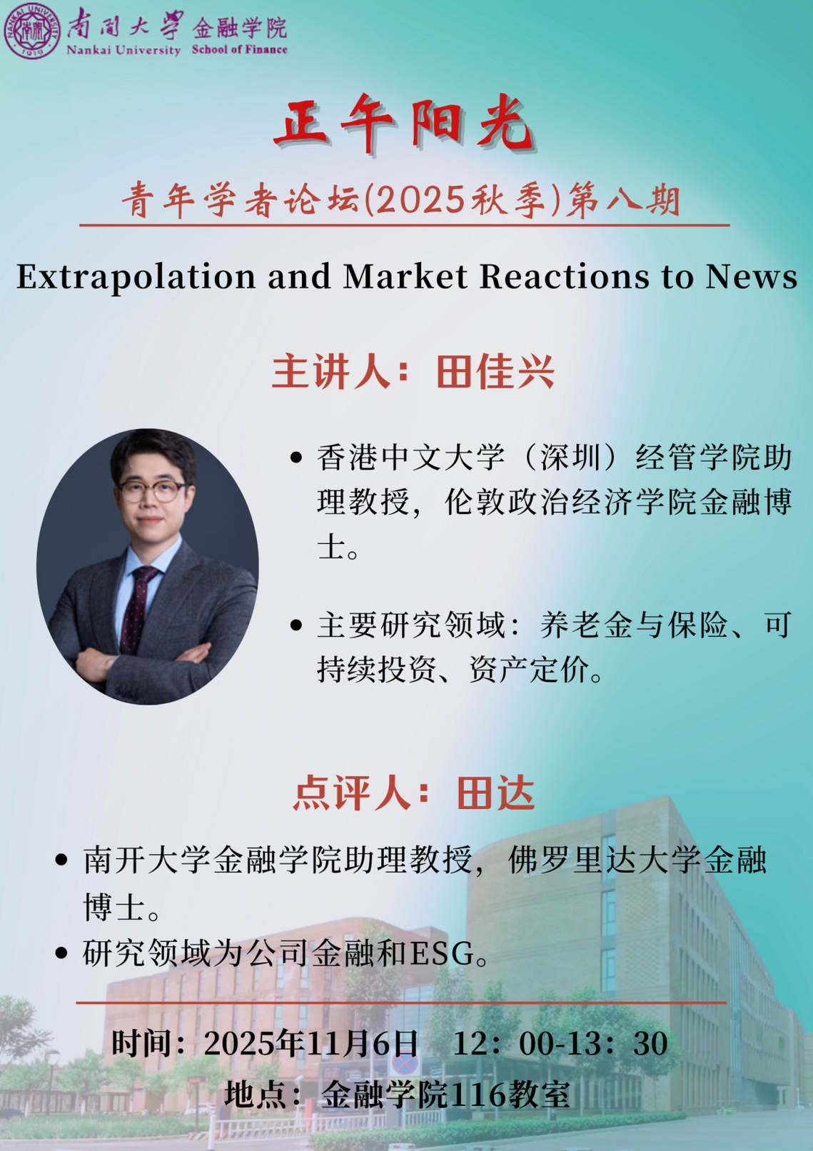 The eighth session of “Noon Sunshine-Young Scholars Seminar” for the Autumn Semester in 2025 is arranged as follows: