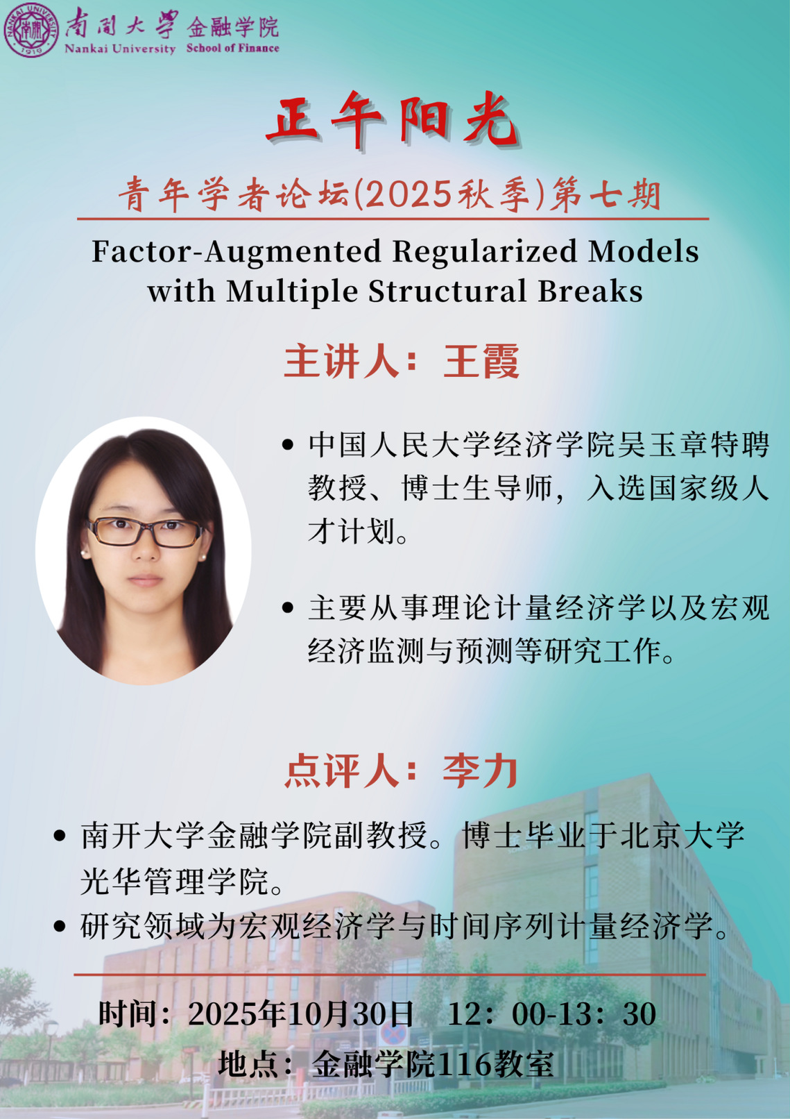 The seventh session of “Noon Sunshine-Young Scholars Seminar” for the Autumn Semester in 2025 is arranged as follows: