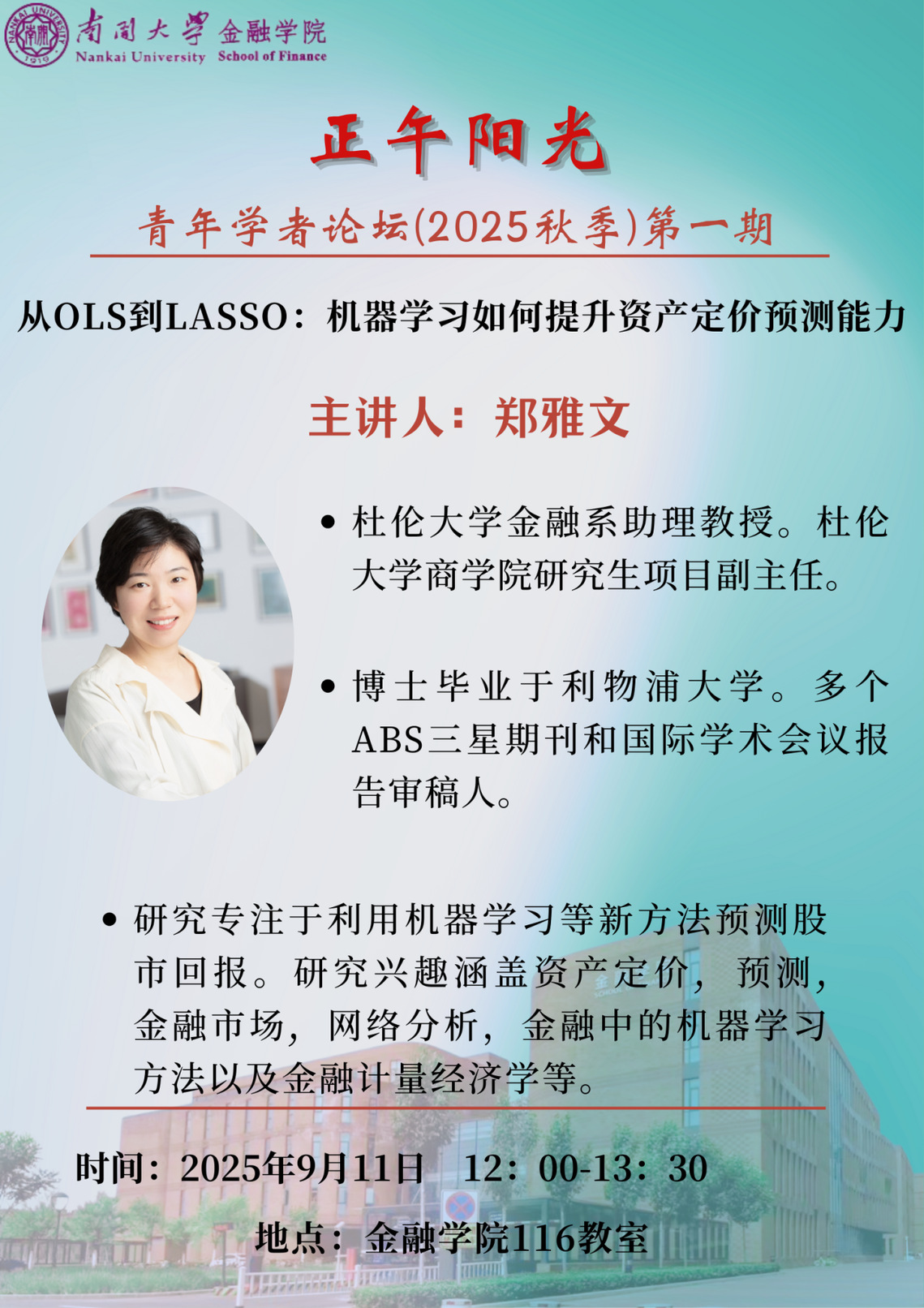The first session of “Noon Sunshine-Young Scholars Seminar” for the Autumn Semester in 2025 is arranged as follows:
